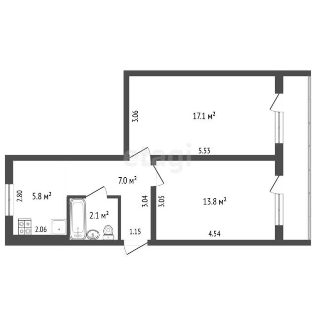 - Площадь кухни5.8 м²