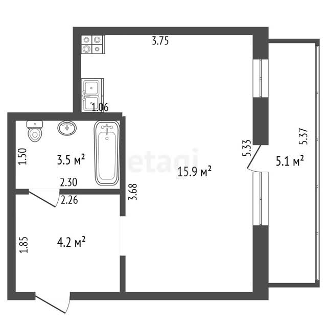 - Общая площадь23.6 м²